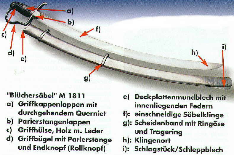 | Blüchersäbel | Kavalleriesäbel M 1811, volkstümlich so benannt nach dem preuß. Feldmarschall von Blücher. |