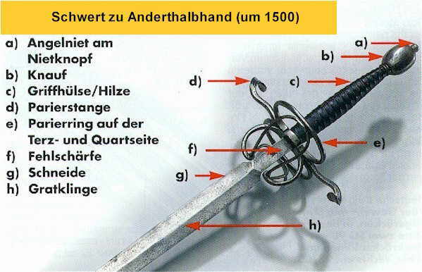 | Anderthalbhänder | Reiterschwert des 14. bis 16. Jh. mit einer Grifflänge von anderthalb Handbreite. |