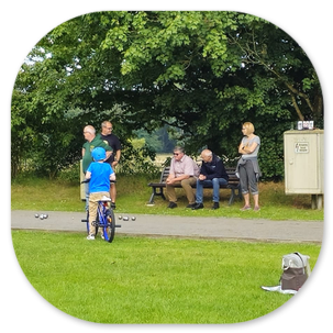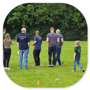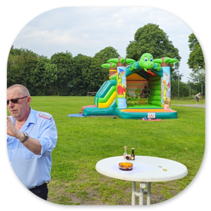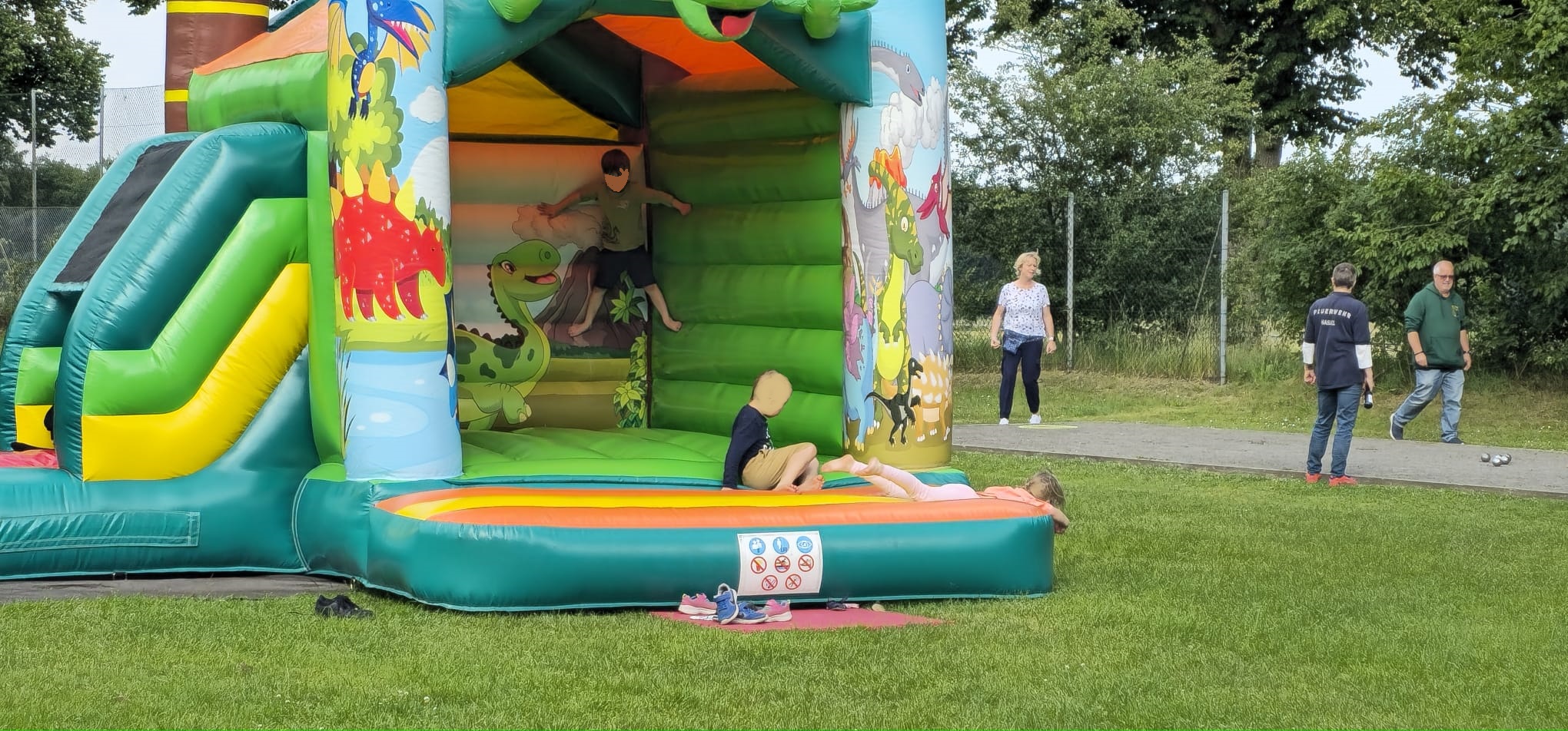 Für die doch recht zahlreichen Kinder wurde eigens eine Hüpfburg organisiert die auch ununterbrochen durchgeknetet wurde. Für die etwas größeren standen Boule, Wickingerschach und Zielwerfen mit eigens hergestellten Sandsäcken auf dem Programm. Die Königsklasse, Hunger und Durst, ist gegen selbstgemachten Kuchen und Salat, dem Romantik Grillbuffet und einem voll bestückten Kühlwagen angetreten und hat verloren. :-)